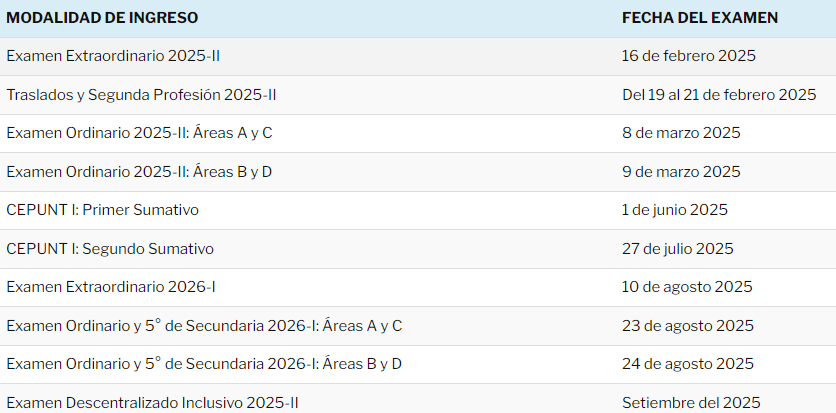 Calendario de admisión UNT 2025
